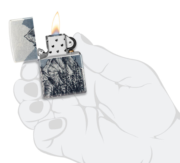 Класична бензинова вітрозахисна запальничка Zippo 48459 Mountains Design із зображенням гір. Дана запальничка, втім, як і всі інші запальнички Zippo, відрізняється високою якістю. ВСІ запальнички Zippo в продаж надходять не заправленими. Паливо можна купити окремо.