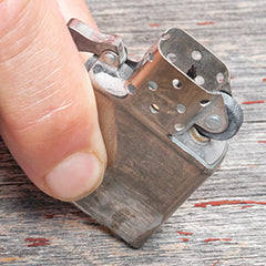 Вставте вставку назад у корпус запальнички та переконайтеся, що кришка повністю закривається. Якщо крем'яне колесо заклинює, поверніть його назад кілька разів.