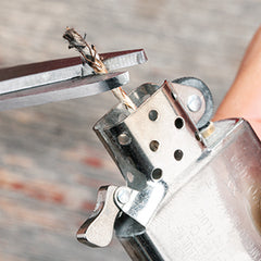 Після встановлення компонентів, вставте вставку назад у корпус і обріжте гніт. Запальничка готова до використання.
